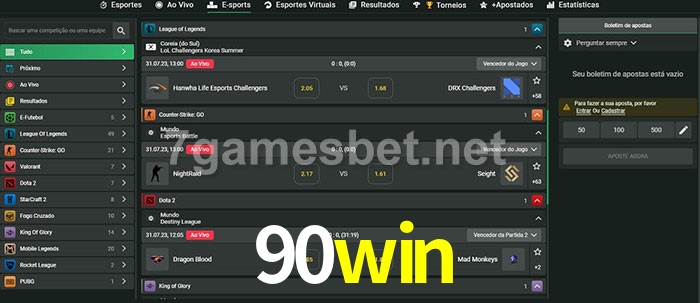O 90win oferece uma grande seleção de opções de apostas em e-sports com probabilidades competitivas